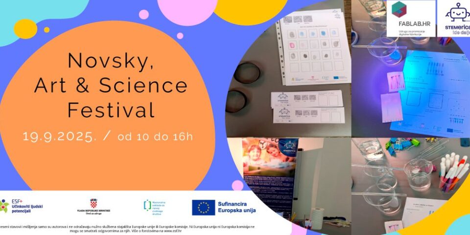 Udruga FabLab poziva vas da se pridružite na Novsky, Art & Science festivalu, u petak 19. rujna 2025., od 10 do 16 sati u Gradskom parku